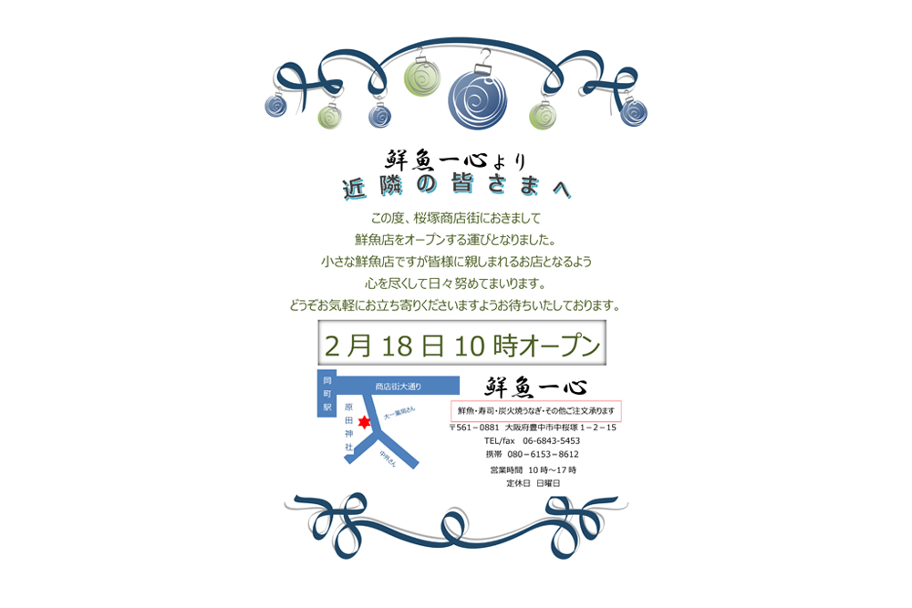2月18日(月) 桜塚商店街に鮮魚店一心がオープン